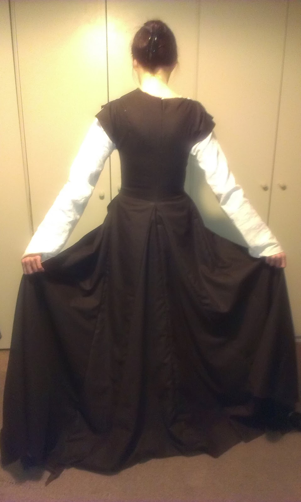 ((Note that the kirtle is not finished in the photographs (the sleeves are absent, the neckline is unfinished in the back, the skirt is too long and unhemmed).))